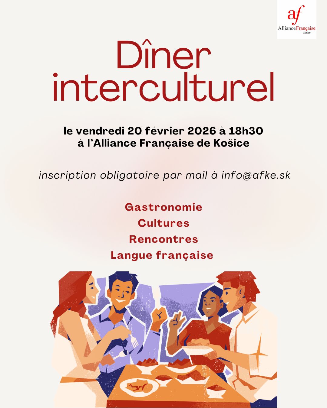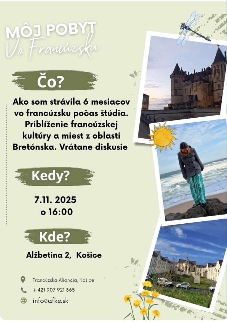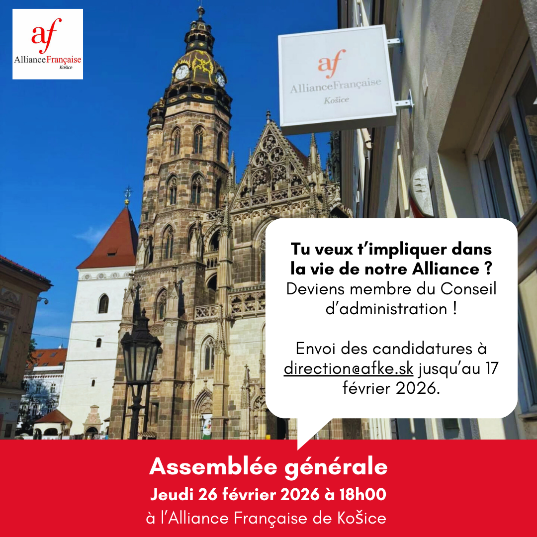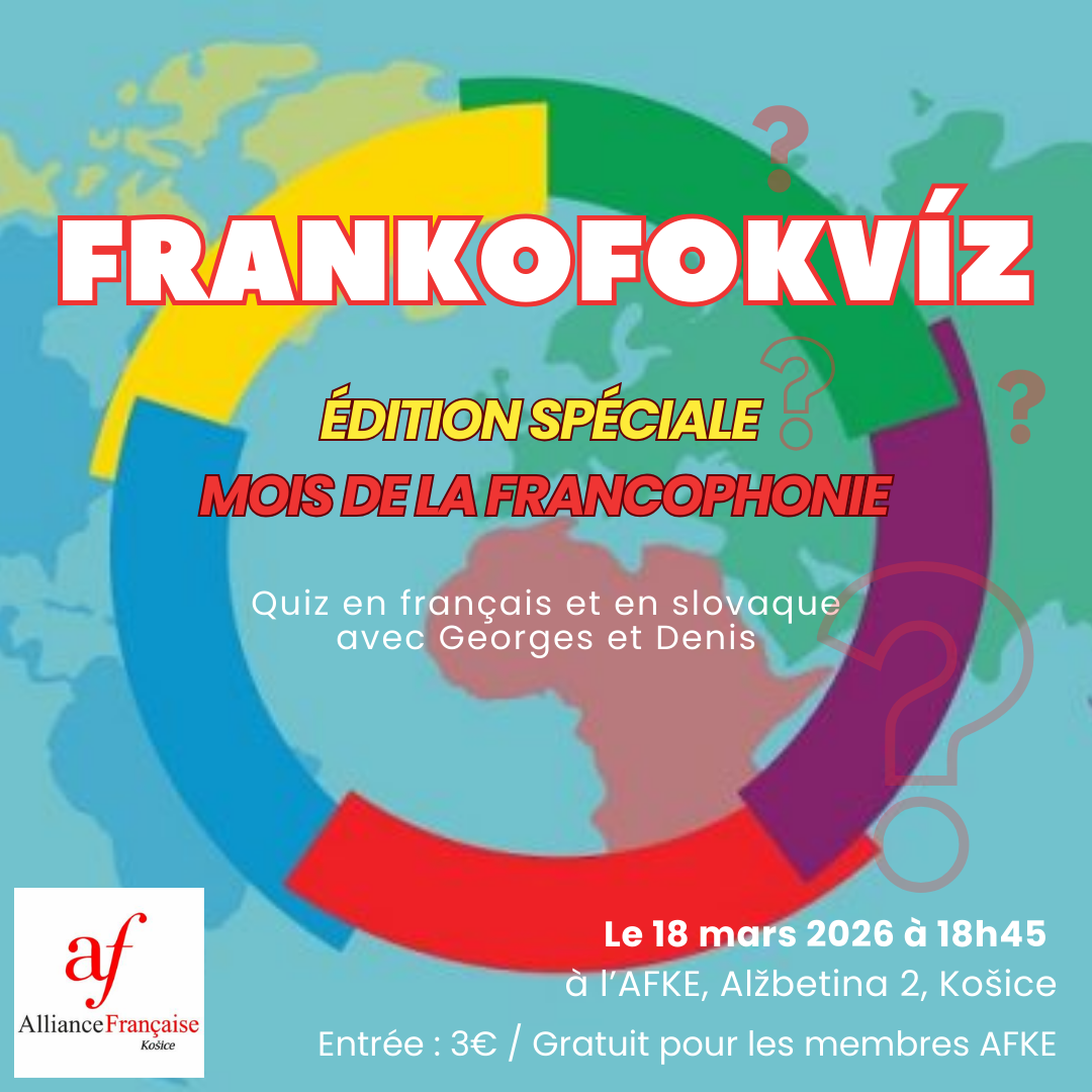 Úlohou Francúzskej aliancie nie je iba organizovať kurzy francúzskeho jazyka a medzinárodné skúšky DELF a DALF. Našou úlohou je aj sprostredkovať širokej verejnosti pohľad na francúzsku kultúru a priblížiť ju ľuďom. Preto je nám veľmi milou povinnosťou organizovať rôzne podujatia, či už divadelné, literárne, filmové alebo gastronomické. Tieto podujatia združujú ľudí, ktorí majú radi frankofónnu…