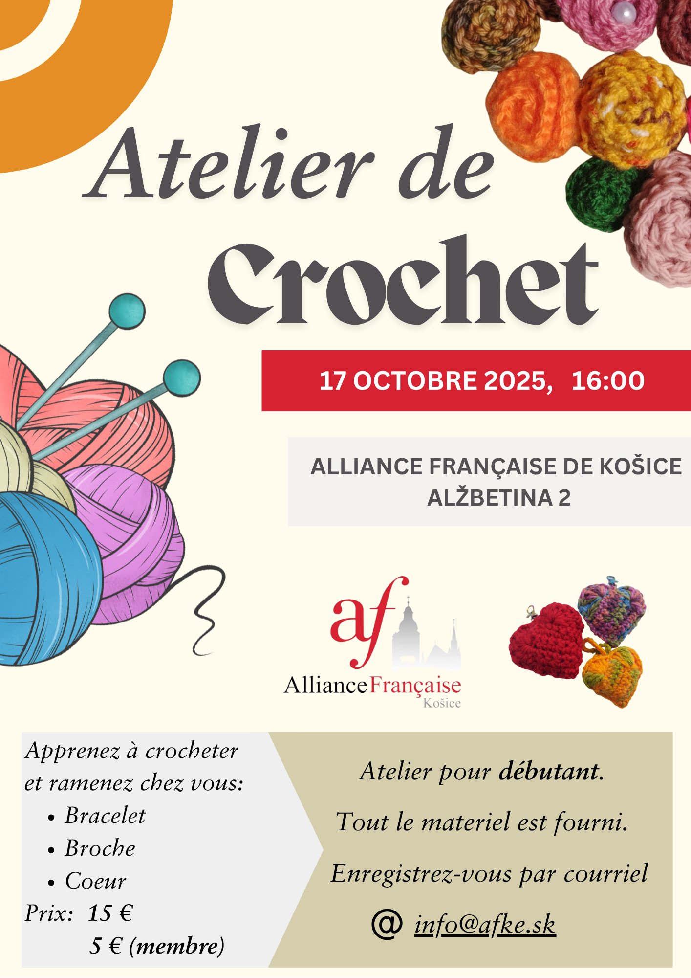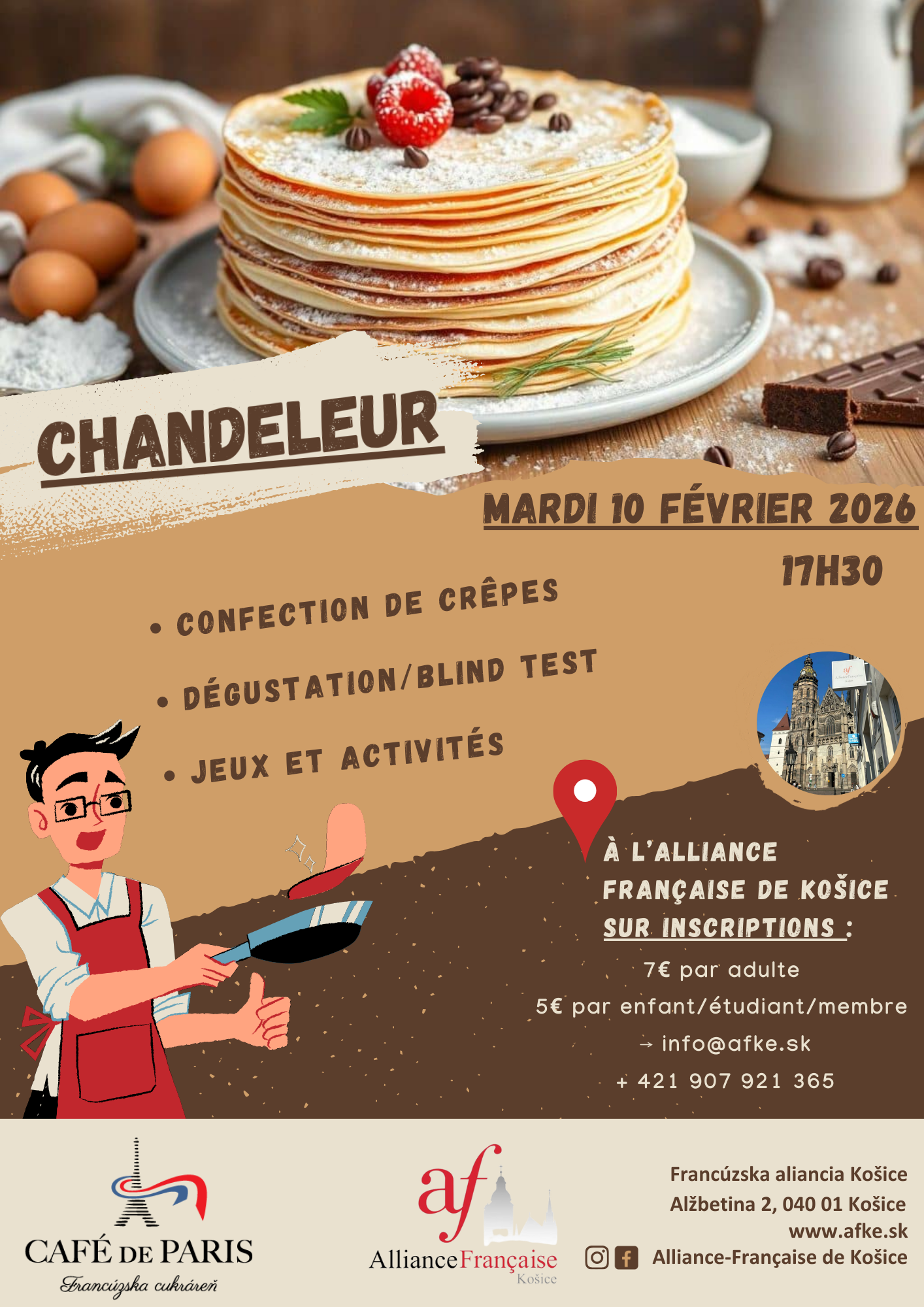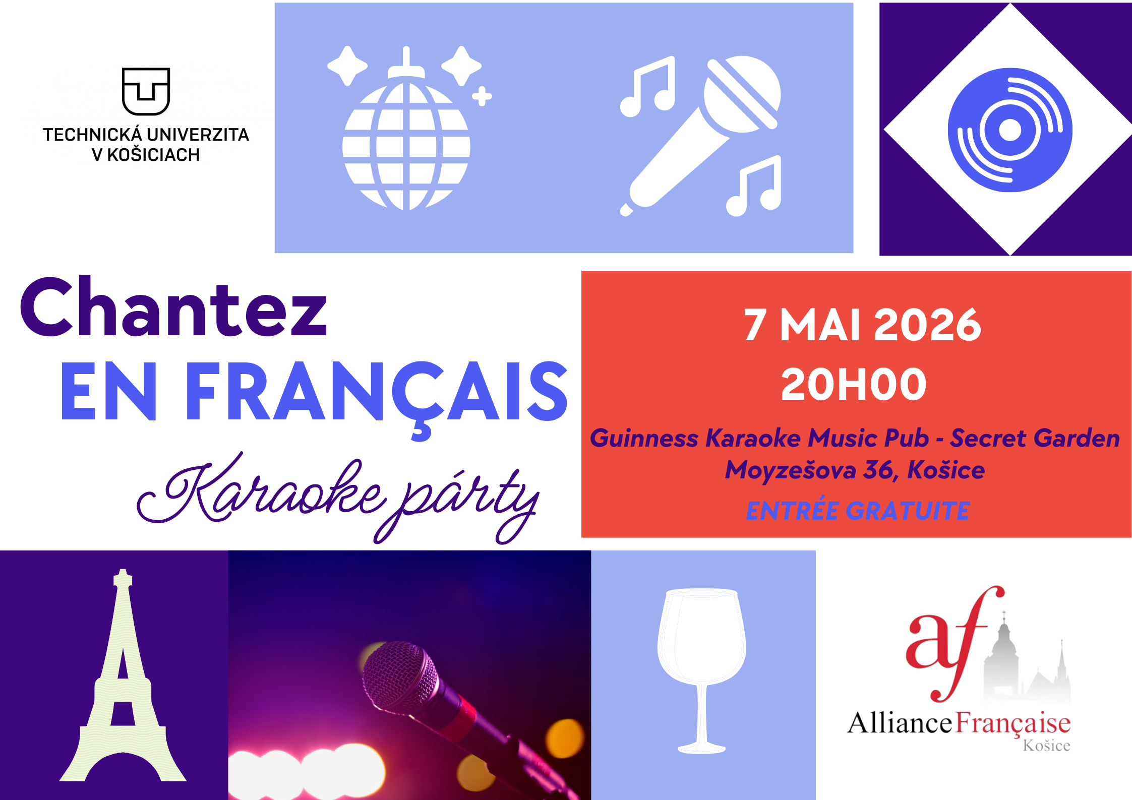 Úlohou Francúzskej aliancie nie je iba organizovať kurzy francúzskeho jazyka a medzinárodné skúšky DELF a DALF. Našou úlohou je aj sprostredkovať širokej verejnosti pohľad na francúzsku kultúru a priblížiť ju ľuďom. Preto je nám veľmi milou povinnosťou organizovať rôzne podujatia, či už divadelné, literárne, filmové alebo gastronomické. Tieto podujatia združujú ľudí, ktorí majú radi frankofónnu…